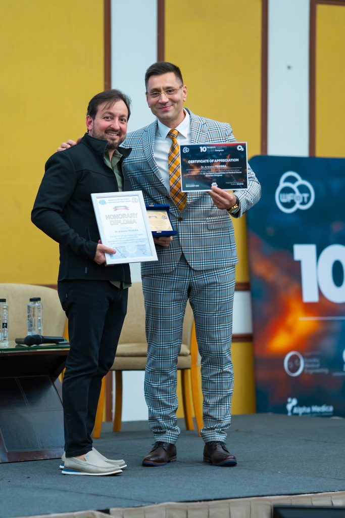 In cadrul intalnirilor cu liderii mondiali in domeniu ozonoterapiei a fost din nou evidentiat faptul ca Romania este prima tara din EU care organizeaza un Atestat de studii in acest domeniu si ca am reusit sa introducem in cadrul programelor de pregatire a studentilor anului V ai UMF Craiova si notiunea de ozonoterapie . Consiliul Director al SSROTT fiid de alfel premiat cu o medalie de onoare de catre Presedintele WFOT pentru realizarile avute in dezvoltarea acestei terapii in tara si in lume .