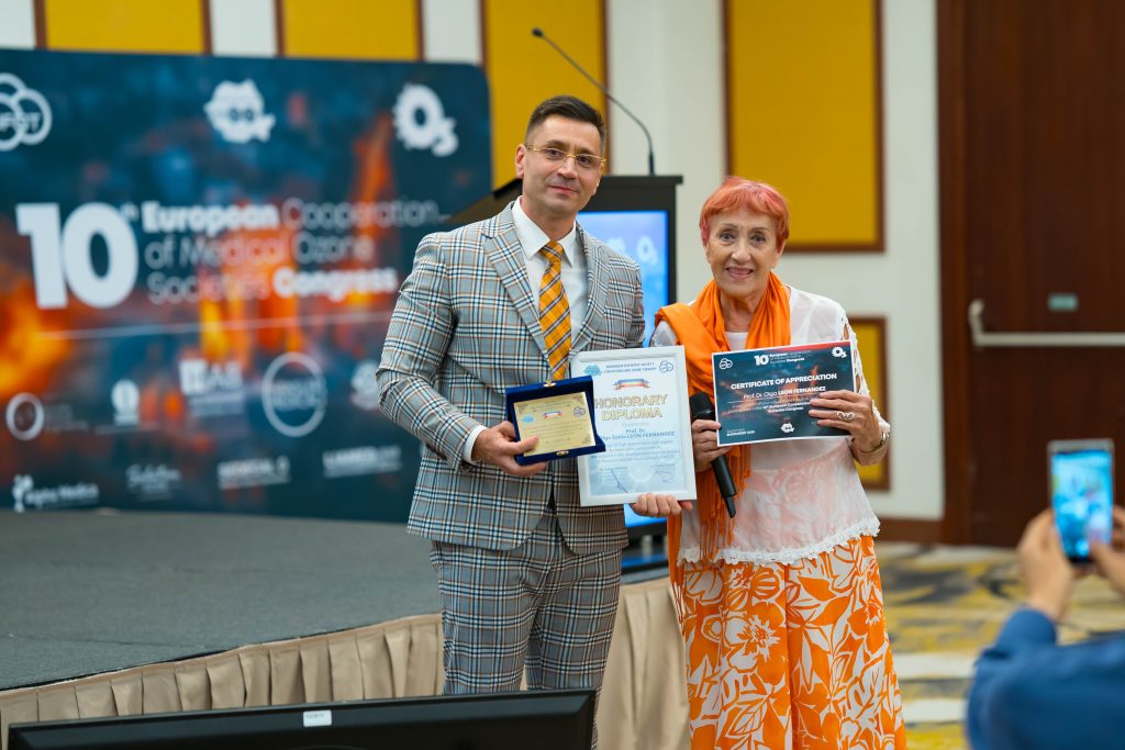La sfarsitul Congresului, Societatea Stiintifica Romana de Oxigen Ozono TErapie , prin presedintele acesteia , domnul Dr. Gabriel MOGOS a premiat si cativa profesori prezenti , care au contribuit decisiv la dezvoltarea acestei terapii la nivel international , si care au fost alaturi de Societatea Romana in ultimii 20 de ani . Printre cei premiati se numera : Prof. Dr. Olga Sonia LEON FERNANDEZ ( Cuba) , Dr. chim . Renate VIEBAHN-HANSLER , Dr. Lale YEPREM ( Turcia), Prof. Lamberto RE ( Italia), Dr. Stefan TIRON ( Romania) , Prof Assoc. Simonetti VICENZO ( Italia) , , dr. Antonio TEIXEIRA ( Brazilia).